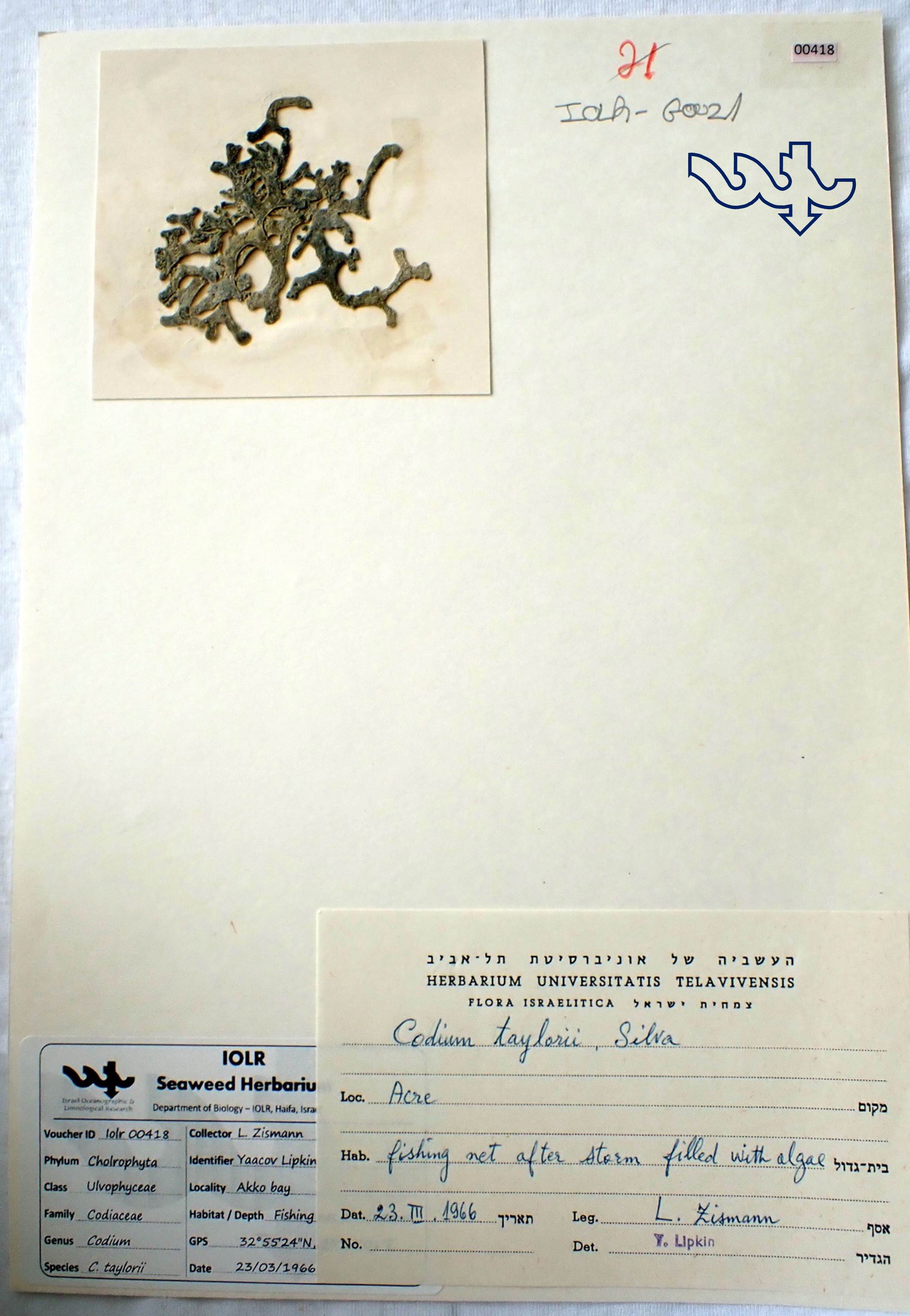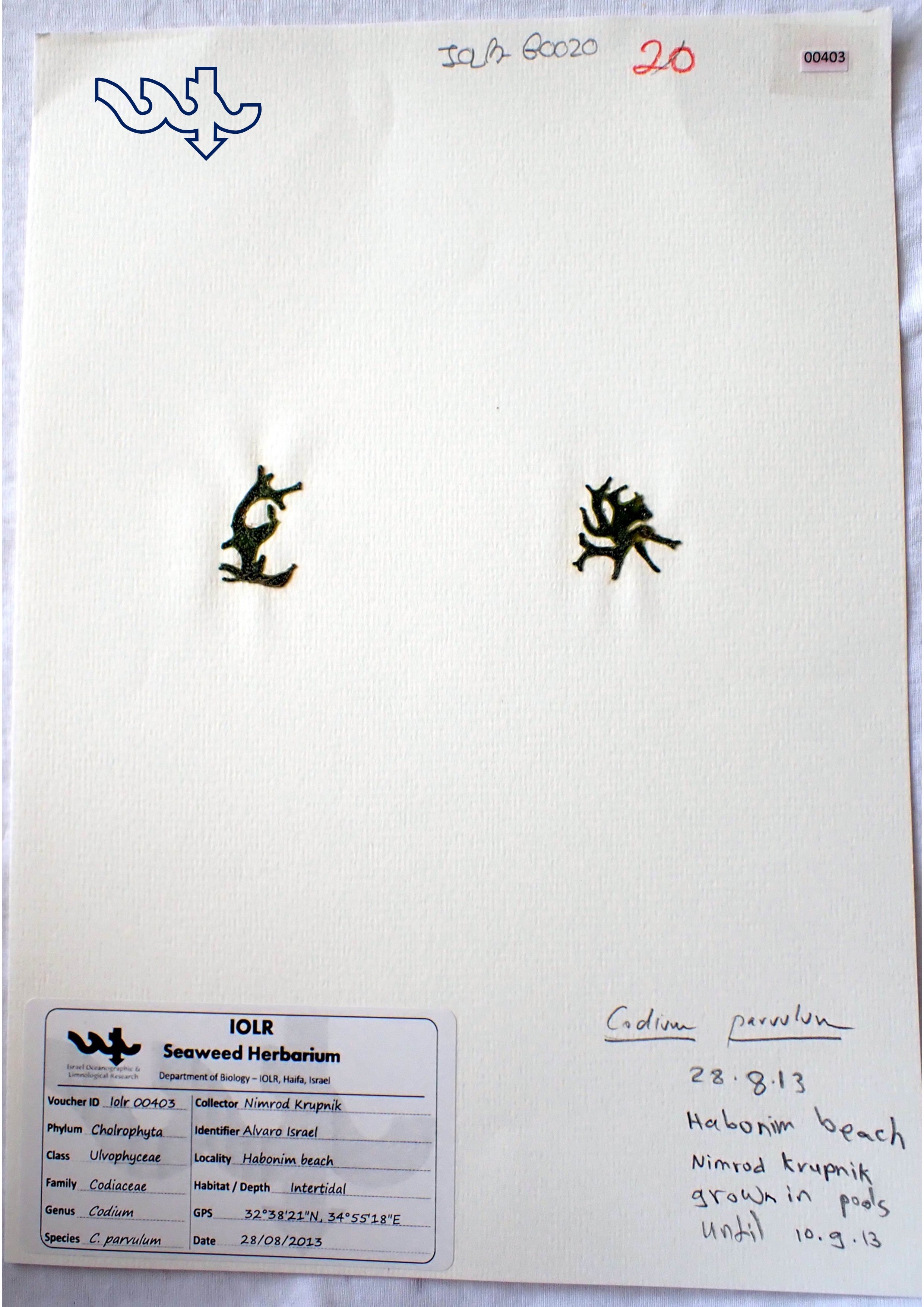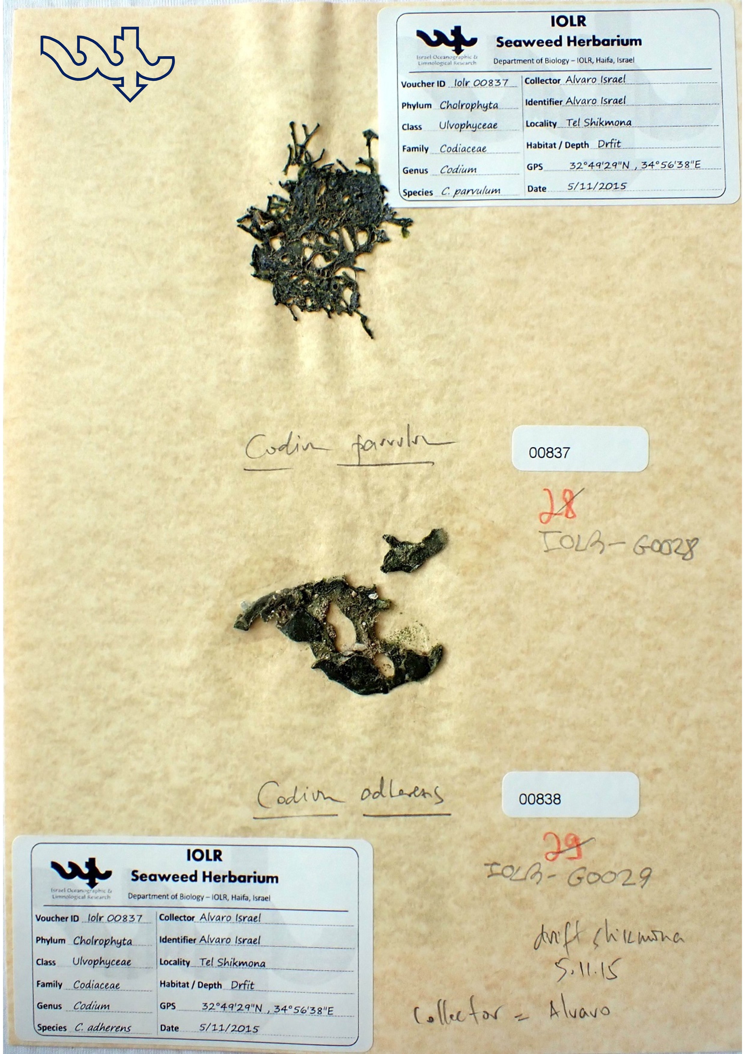 Species in Herbarium: Codium parvulum, Codium arabicum, Codium