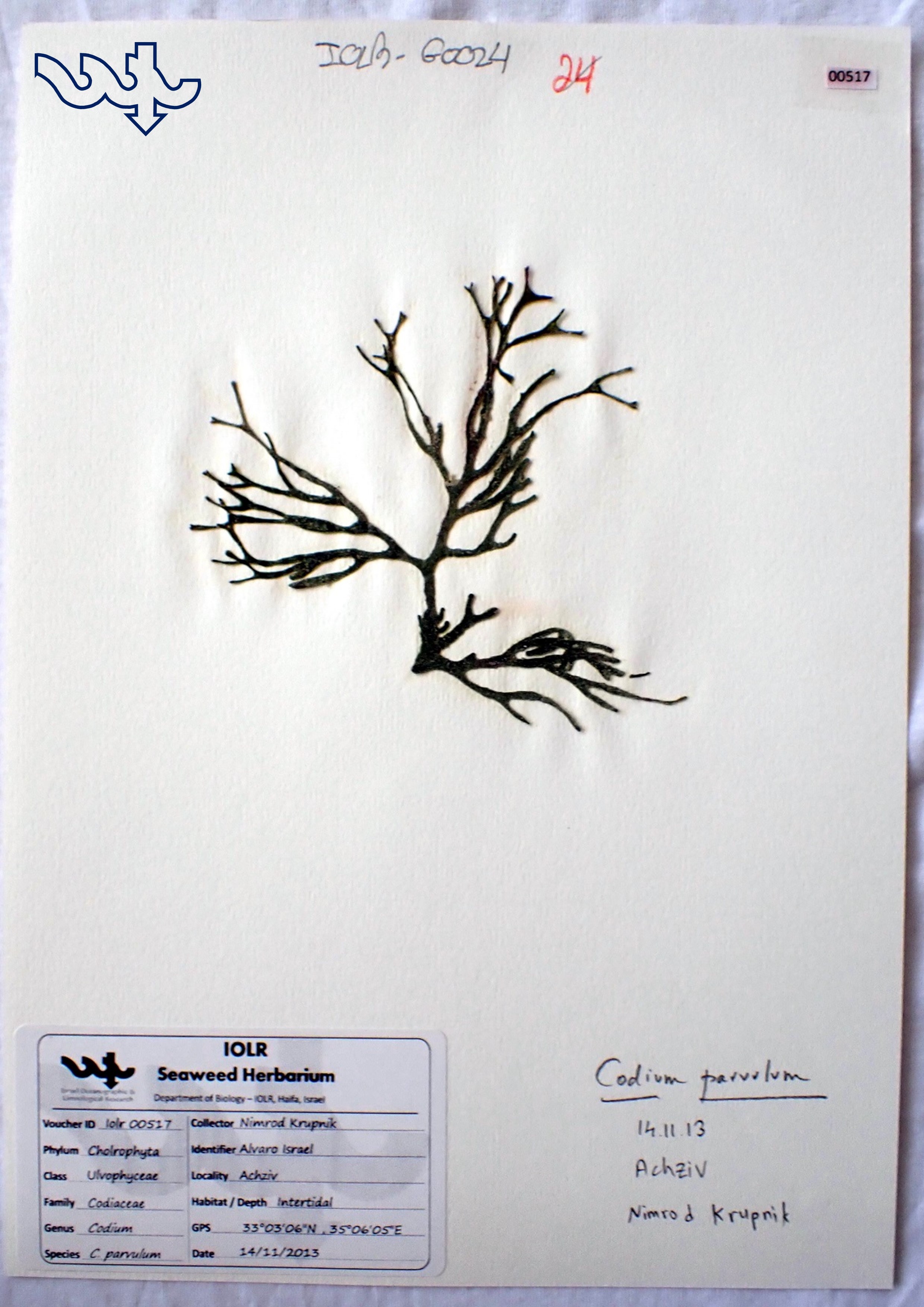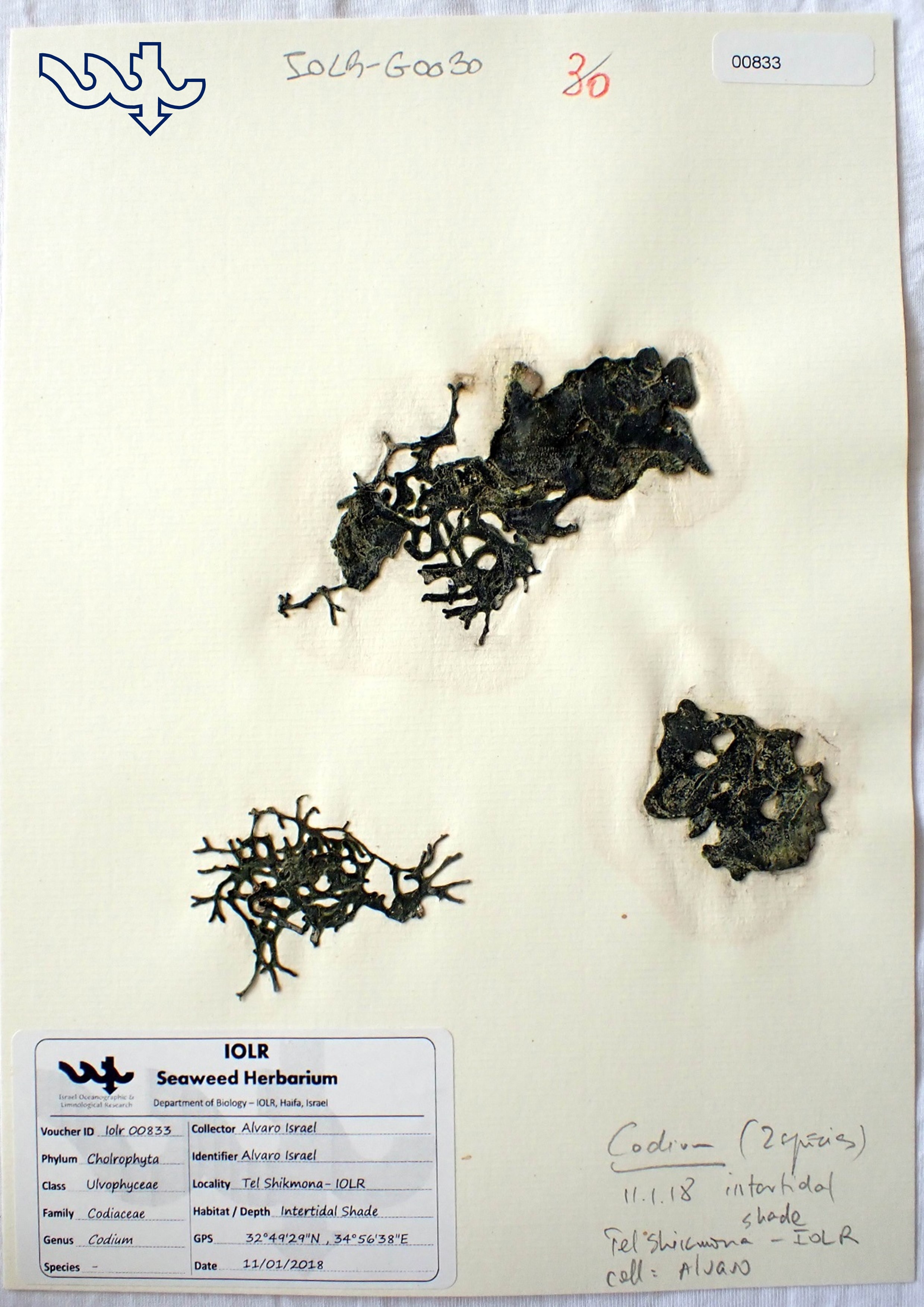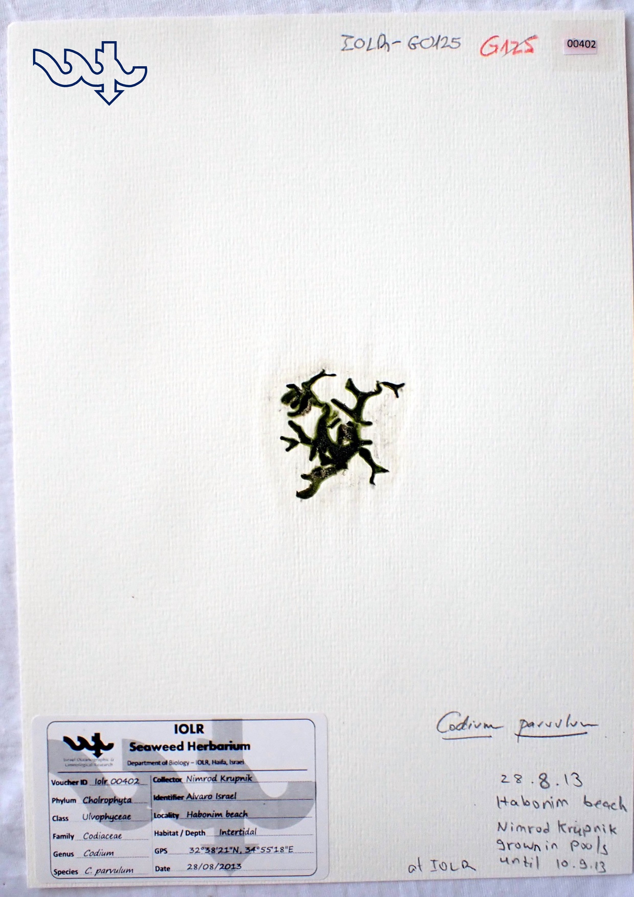 Species in Herbarium: Codium parvulum, Codium arabicum, Codium